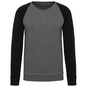This two-tone organic raglan sleeve sweatshirt for men is available in various sizes from S to 3XL and in 4 different colors.