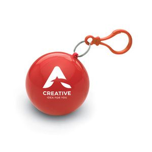 Transparent PE poncho wrapped in an AS ball shell with carabiner hook tohang on a belt or a bag.