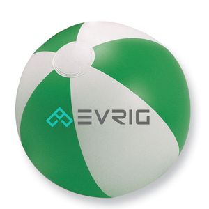 Inflatable beach ball with coloured stripes.