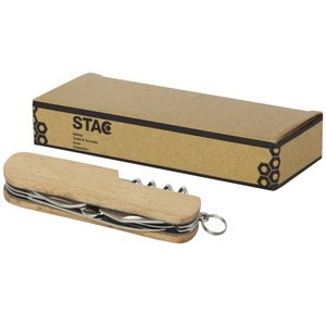 Strong and durable compact pocket knife made from high quality stainless steel with handles made of beech wood. This is a must-have pocket knife for any scout, handy man, and outdoor enthusiast. Includes 7 functions: knife, corkscrew, file/file cleaner, key ring, flat screwdriver, bottle/can opener and scissors. The beech wood used is from sustainable, environmentally and socially responsible sources. The size when opened is 17 x 2.5 cm, and when closed 9.5 x 2.5 cm. Comes with an instruction manual and is packed in a recycled cardboard gift box with a size of 12 x 4.5 x 2 cm. Laser engraving is recommended as a sustainable decoration option.