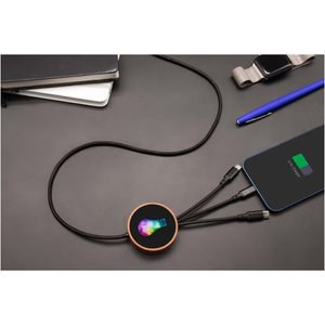 Eco-Friendly 5-in-1 Bamboo Charging Cable with Light-Up Logo