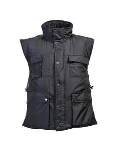 Bodywarmer polyester ripstop. Polyester Lining with fleece. Sider zippers. Vest with polyster ripstop with padding. Multi-pockets: 1 large pocket for documents under the central flap - 1 zipped chest pocket left side closed by flap and Velcro - 2 3D patch pockets with flaps and pressure + vertical pockets - - 1 zippered pocket hidden under the right side flap - 1 chest pocket + mobile phone right side pen holder 2 zip on the sides - elasticated armholes - Back longer - zip opening for brand.