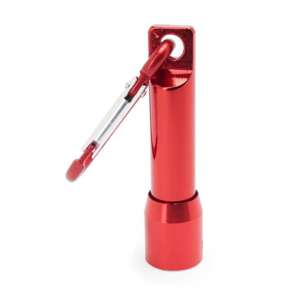 Battery-powered 1 LED flashlight, available in different metal colours, with matching carabiner.