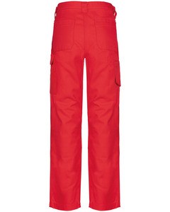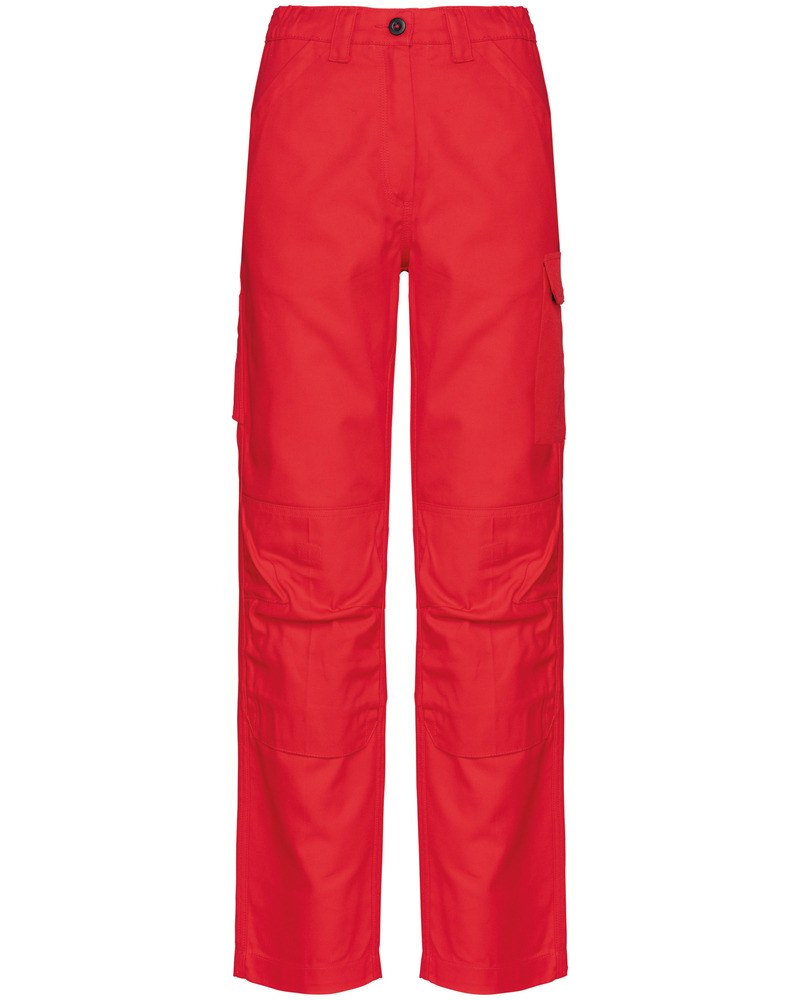 1 pocket with flaps and velcro fastening on the left when worn, 1 double open tool pocket on the right when worn, 2 back patch pockets, 2 knee pad pockets in matching colour with velcro and flap inside to support and adapt the knee pad.